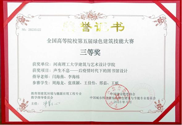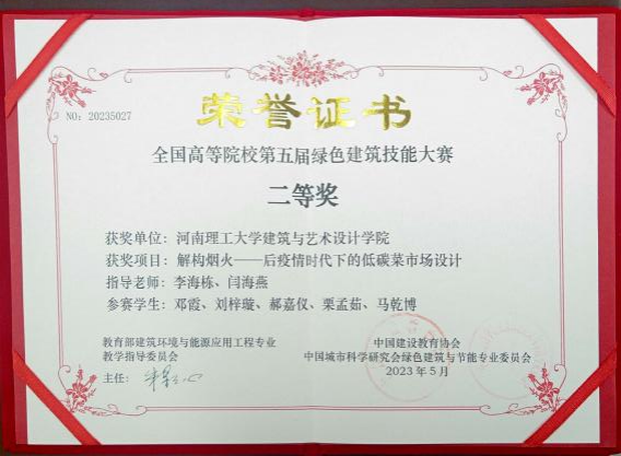 设计作品荣获二等奖1项、三等奖1项、优秀作品奖5项,闫海燕和李海栋老师获优秀指导老师奖,学院获院校组织奖。