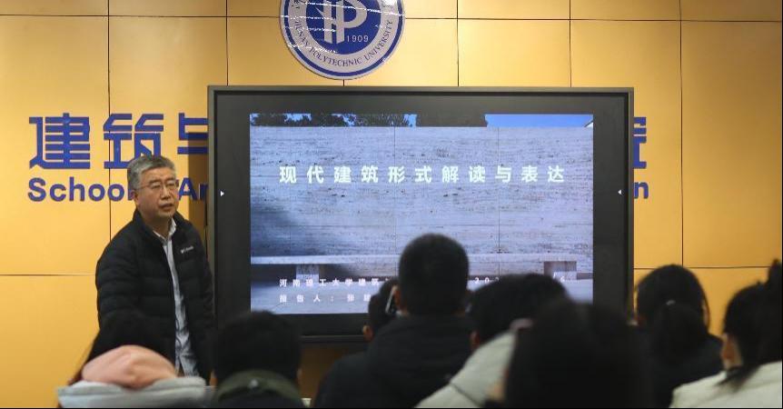 12月26日下午,郑州大学建筑学院教授张建涛应邀在学院会议室为学院师生开展了“现代建筑形式解读与表达”的学术讲座,讲座由闫海燕教授主持,建筑学及相关专业师生到场聆听交流。