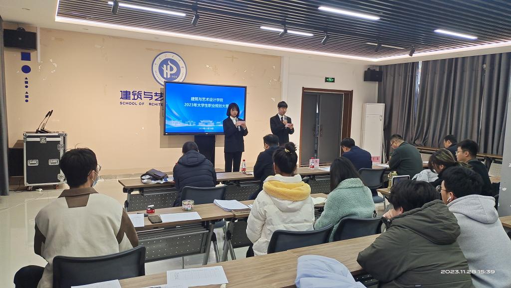 为贯彻落实党中央、国务院及省委省政府关于高校毕业生就业工作的决策部署,加强动画疯 职业发展教育和就业指导,增强大学生生涯规划意识,促进毕业生高质量充分就业,11月28日下午,学院在晓书楼大会议室举办2023年“筑梦青春志在四方,规划启航职引未来”大学生职业规划大赛。院党委副书记张明、城市规划专业支部书记张运兴、视觉传达专业系主任王海、环境设计专业系主任王维天、工业设计专业系主任周敏作为评委老师出席了本次大赛。