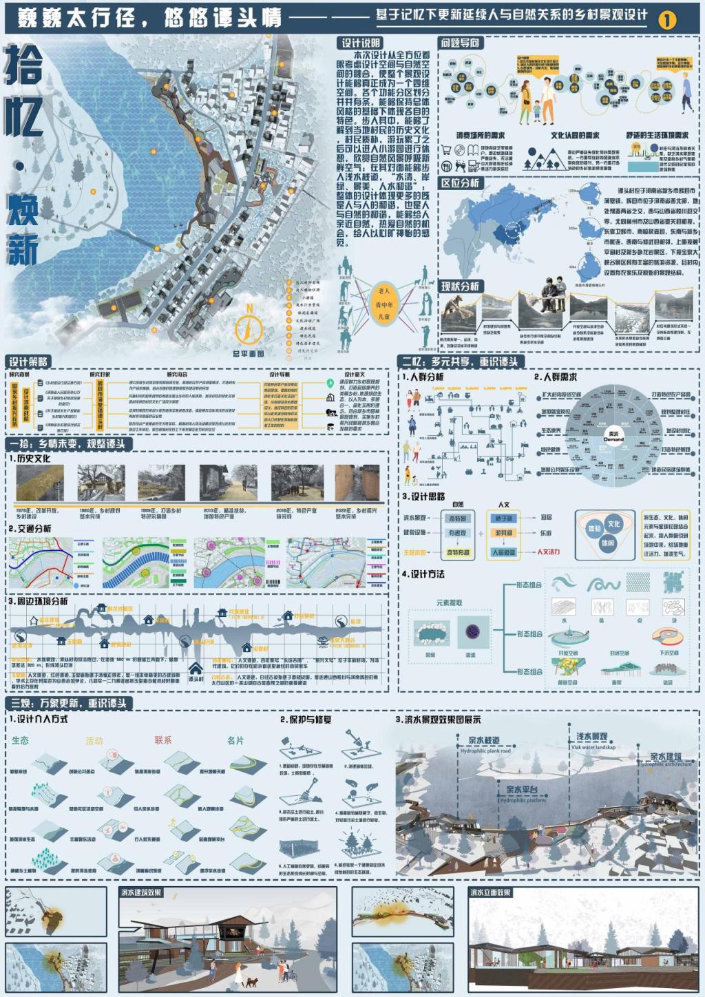樊泽鑫等三位同学的作品“沁古叠今——集璞舍”获得国赛等奖,该作品基于韧性视角的乡村更新设计,以武陟县中封村文旅产业发展为例,以“璞”为主题,构建东方院落、寂隐生活。以“花生之乡,文化旅居”为核心,以宅院的形制,构建小亭院落顺应当下的生活方式,从衣食住行的生活方式中探寻文化旅居更多的可能性,结合当地民族文化实现韵味提升,在打造新旧融合的过程中保留本土韵味。