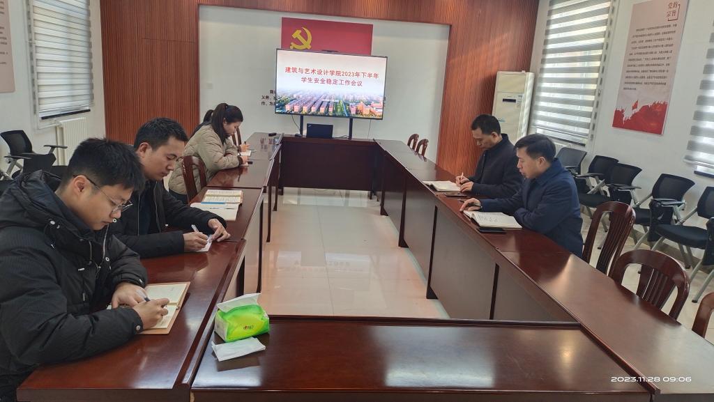 关于全校学生安全稳定工作方面的会议内容和精神,通报并分析了近期全省教育系统发生的一系列学生安全事故。同时,他就学院学生在学习、生活、人际交往等方面可能存在的安全隐患进行了安排部署。一方面要求全体学工人员从思想上高度重视学生安全稳定工作,摒弃一切马虎大意思想,定期不定期对全体学生开展安全教育引导。另一方面,全体学工人员要带领发动学生骨干,建立网格化安全管理机制,落实好安全排查工作,对专业教室、宿舍等重要教学生活场地进行走访和检查,关心关注特殊学生群体,杜绝一切可能存在的安全隐患事件发生。