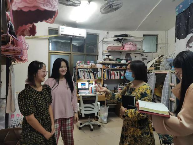 党委书记杨富卿、副书记张明、副院长韩宏斌、副院长闫海燕及各年级辅导员深入各年级学生宿舍,为学生送去关心和问候。