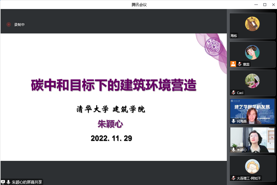 报告会上,朱颖心教授从建筑能耗占比、专业领域面临的挑战与对策、建筑可利用的零碳能源、室内健康环境营造和精准服务等方面进行讲解。她指出建筑能耗的降低在国家“双碳”目标中占有重要的地位和作用,在保证室内环境舒适健康的基础上实现低碳、零碳是学科领域所面临的挑战;通过多学科专业配合,从生理、心理、医学等方面开展个性化研究,可实现“营造春天、精准服务”并减少能耗与碳排放。最后,朱教授与线上师生进行了互动交流,对大家提出的疑问一一给予耐心、细致的解答,参会人员深受启发、受益匪浅。