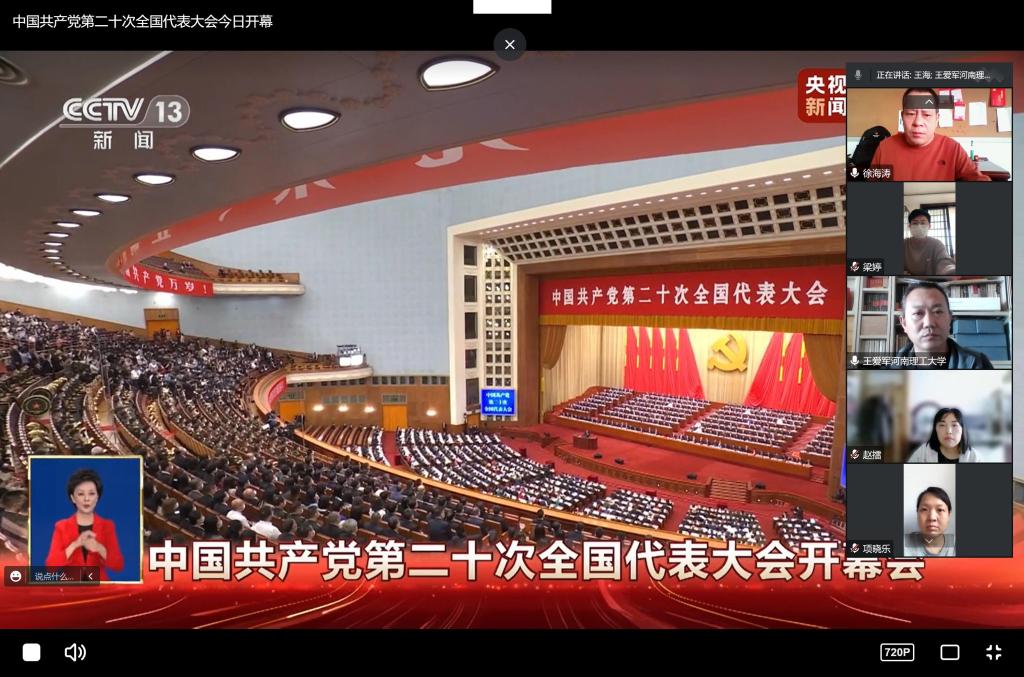 党的二十大报告在学院引起强烈反响。同志们一致认为,报告主题旗帜鲜明,明确宣示“党在新征程上举什么旗、走什么路、以什么样的精神状态、朝着什么样的目标继续前进”等重大关键问题。报告科学分析了当前国际国内形势,全面总结了过去五年工作和新时代十年的伟大变革,全面阐释了新时代坚持和发展中国特色社会主义的重大理论和实践问题,具有很强的政治性、理论性、指导性。报告对全面建成社会主义现代化强国两步走战略安排进行宏观展望,科学谋划未来五年乃至更长时期党和国家事业发展的目标任务和大政方针。报告提出一系列新观点新论断,是指导我们全面建设社会主义现代化国家、向第二个百年奋斗目标奋进的纲领性文献。