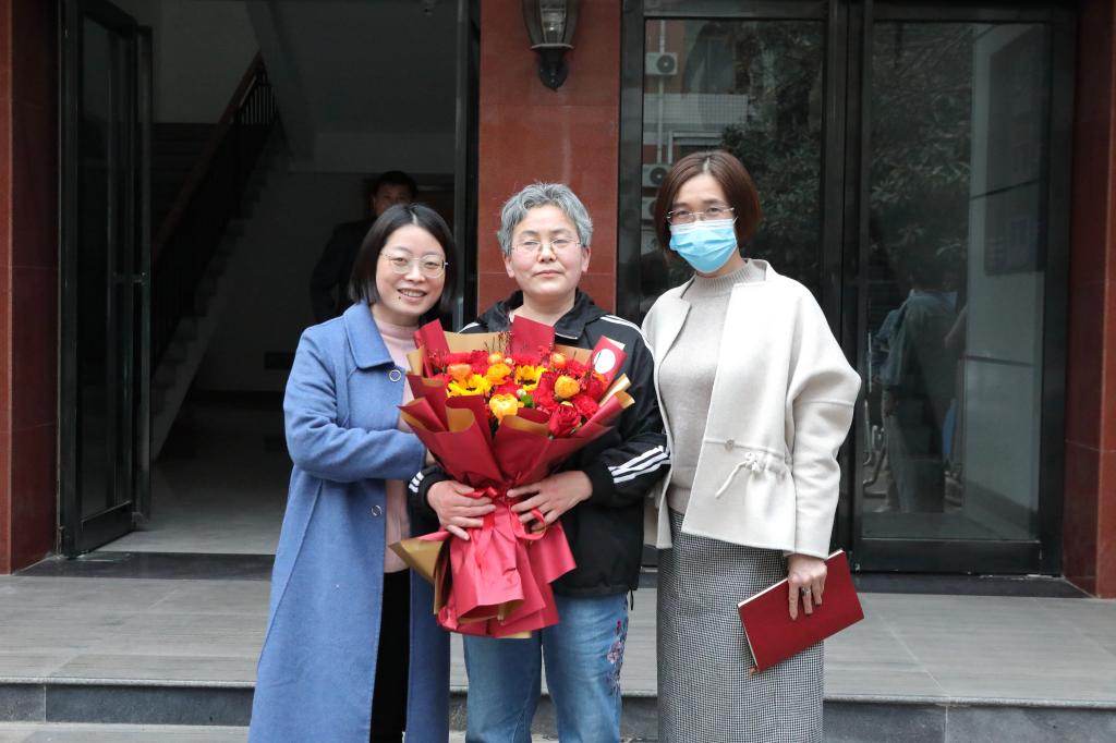 学院杨富卿书记和王同文院长向两位退休教师送上鲜花和荣休证书,对两位退休教师三十余年在岗做出的贡献表示由衷的敬意与感谢,希望两位荣休教师退而不休,常回学院看看,并叮嘱青年教师要用心、用力、用情对待自己的工作,推动教育事业前行。随后,在会教师纷纷共述往事情谊,细数过往点滴,表达了对两位荣休教师崇高的敬意和深切的祝福。最后,全体参会人员在学院楼门前合影留念。