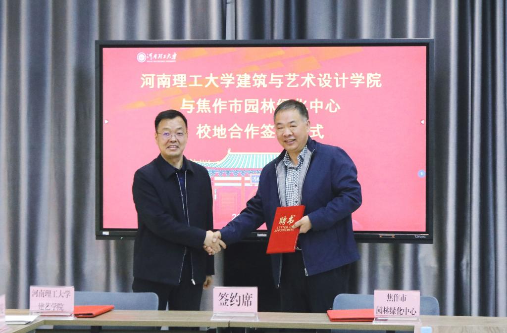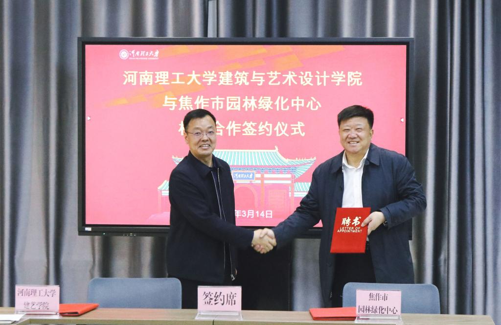3月15日下午,学院与焦作市园林绿化中心校地合作签约仪式在学院会议室举行。校工会主席郭相春、焦作市园林绿化中心主任刘学峰、副主任刘长林、焦作市盆景园主任胡湛、研究生院副院长陈俊杰、学院党委书记杨富卿、副院长韩宏斌出席仪式。仪式由学院院长王同文主持。