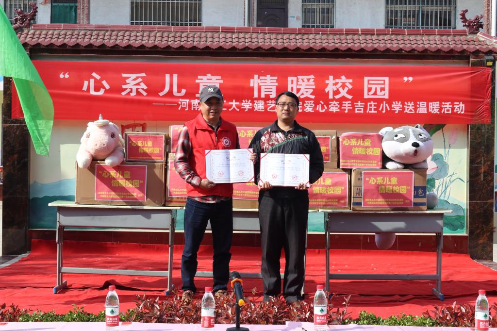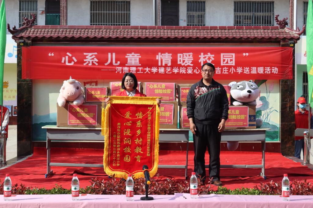 回赠锦旗。为进一步完善吉庄小学音体美方面的教学力量,双方共同签订爱心帮扶证书,共建爱心帮扶基地。随后,张明书记与吉庄小学师生们一同参观动画疯
