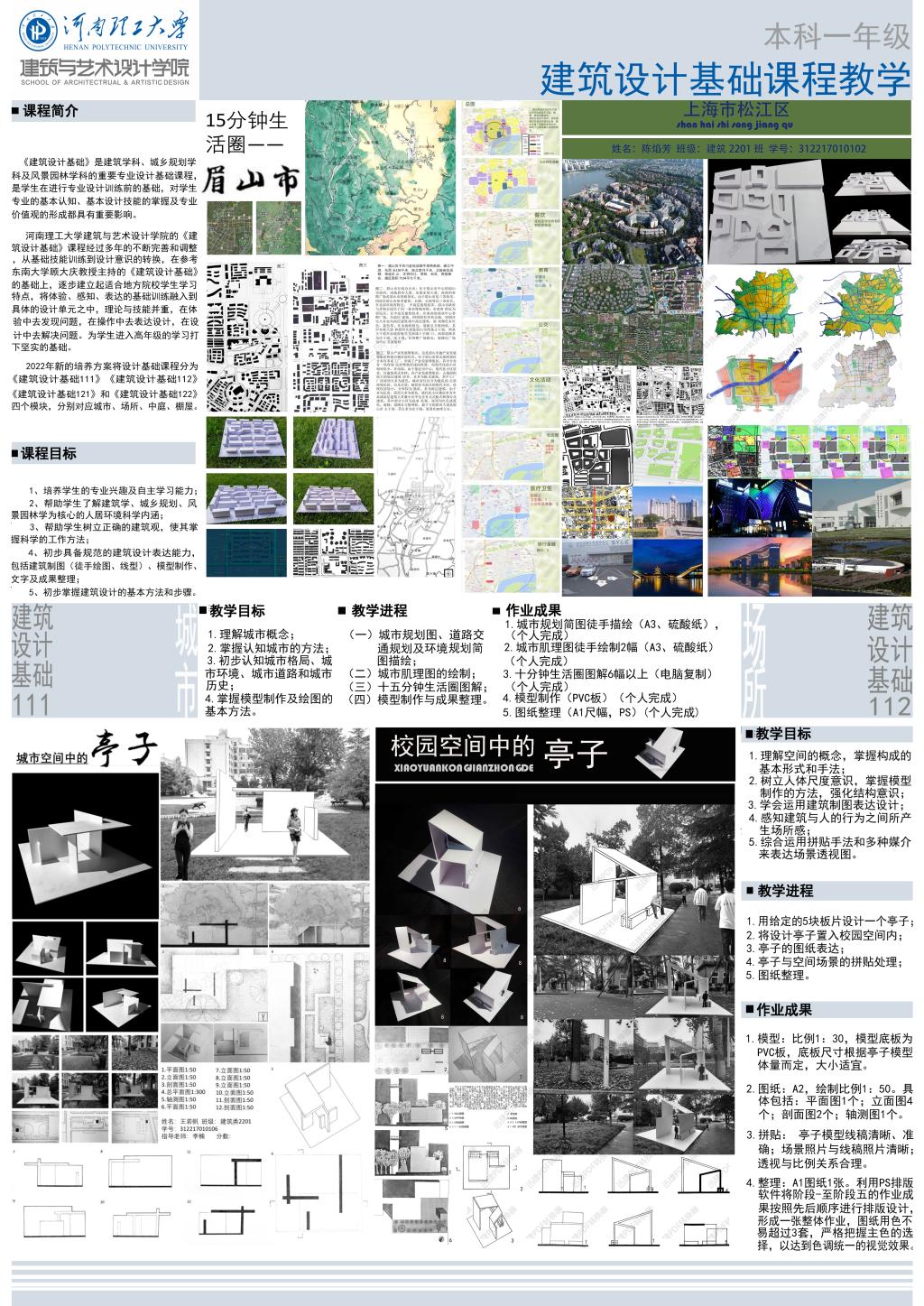 建筑设计基础教学实践”的教学汇报,从形式语言训练与体验设计训练比较,简述了建筑设计基础教学在理念、内容、方式等方面的转变,并介绍了学院建筑教育发展沿革及建筑设计基础课程的设置与安排。