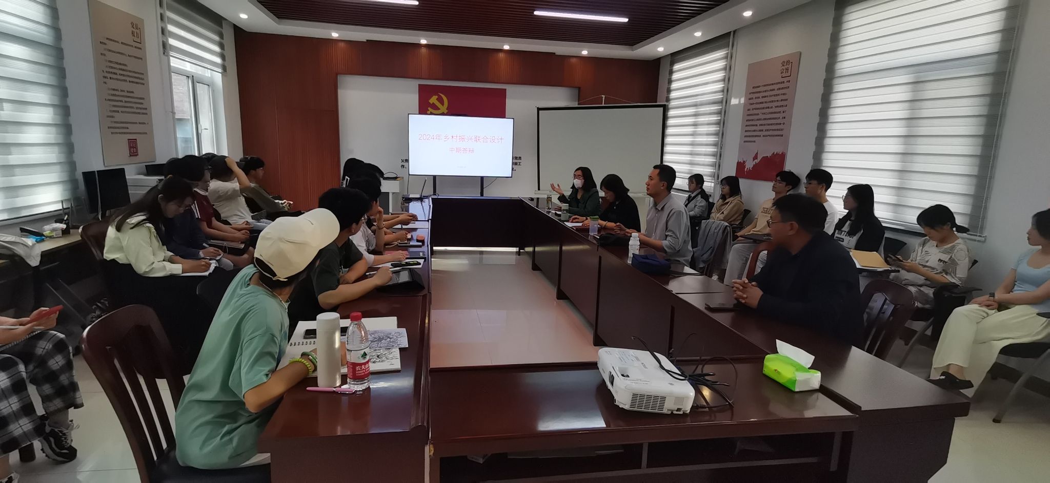 2024年乡村振兴联合设计课程针对焦作市城乡一体化示范区阳庙镇杨庄、马庄、和庄等乡村开展工作,由建筑学、城乡规划学、环境设计、视觉传达、工业设计、国际经济与贸易、旅游管理等专业50余名师生参与到这项工作中。从2024年3月初开始,已进行了近两个月的调研和设计工作,按原工作计划,于4月25日在学院会议室举行中期答辩。