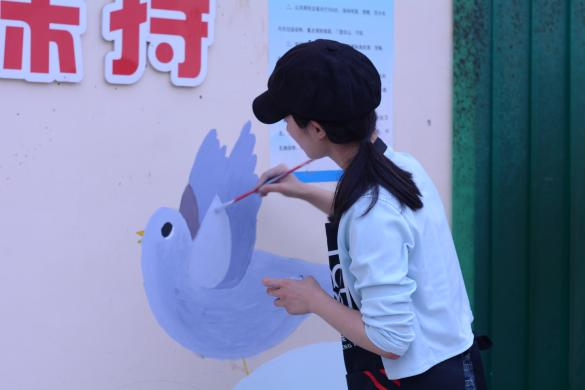 活动期间,在刘辉老师、李媛老师的带领下,志愿者们与吉庄小学的老师们共同参与了校园墙绘的创作。历经三天时间,原本单调的校园墙壁变成了色彩斑斓的艺术长廊。一幅幅生动的画面跃然墙上,既有展现中国传统文化的“二十四节气”墙绘;也有“学习雷锋好榜样”、“中华民族一家亲”等为主题的创意绘画;还有充满特色的涂鸦作品,每一幅作品都充满了文化内涵与教育意义。