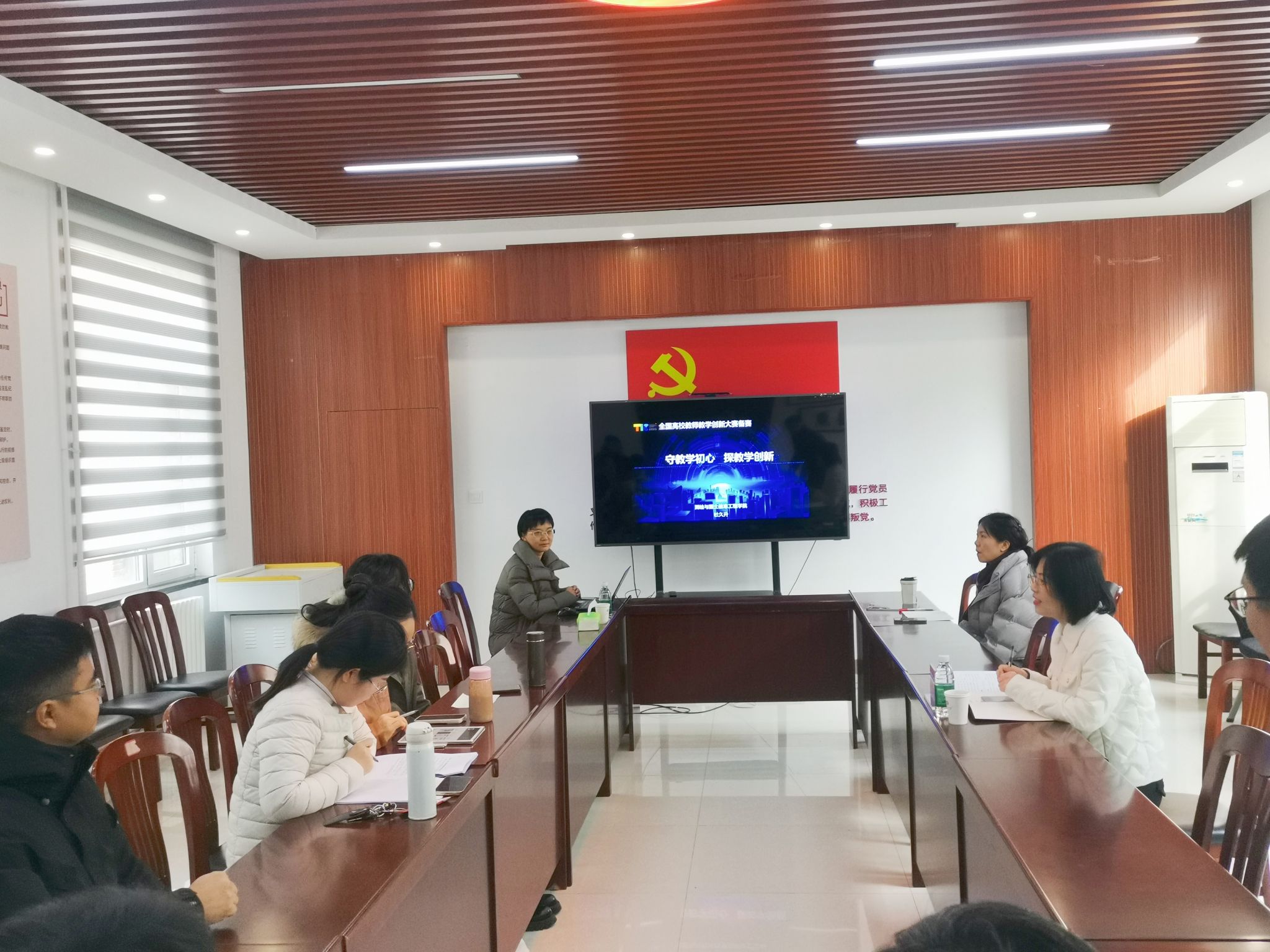 杜久升副教授结合自身参加全国高校教师教学创新大赛的经验,从教创赛的简介、网评材料准备、现场汇报准备、日常教学准备等四个方面详细介绍了教学竞赛的流程、注意事项等,现场老师纷纷表示受益良多。