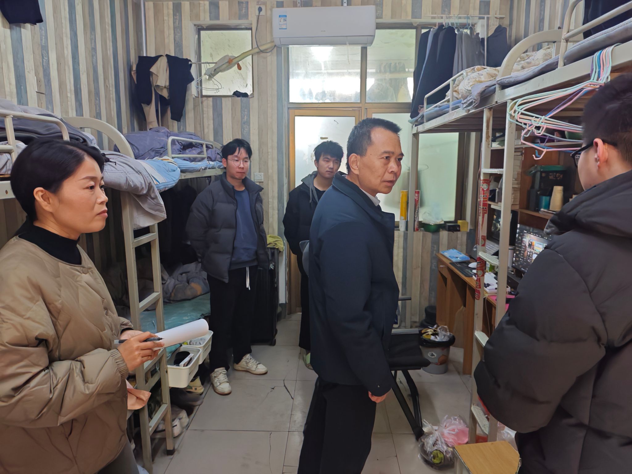 为精准摸排春季学期学生返校报到情况,了解掌握学生生活状况及思想动态,确保新学期学生工作安全、有序开展,2月16日下午,学院党委书记张建新、党委副书记张明、副院长韩宏斌、副院长何艳冰及全体辅导员深入学生宿舍开展全面走访和检查工作。