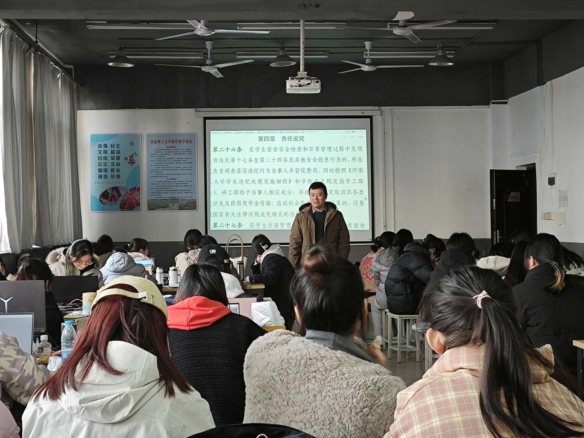 学生住宿管理办法》等文件内容,明确了宿舍安全教育管理的刚性要求。同时,老师们还详细列举真实案例,介绍了近年来身边因为违反动画疯