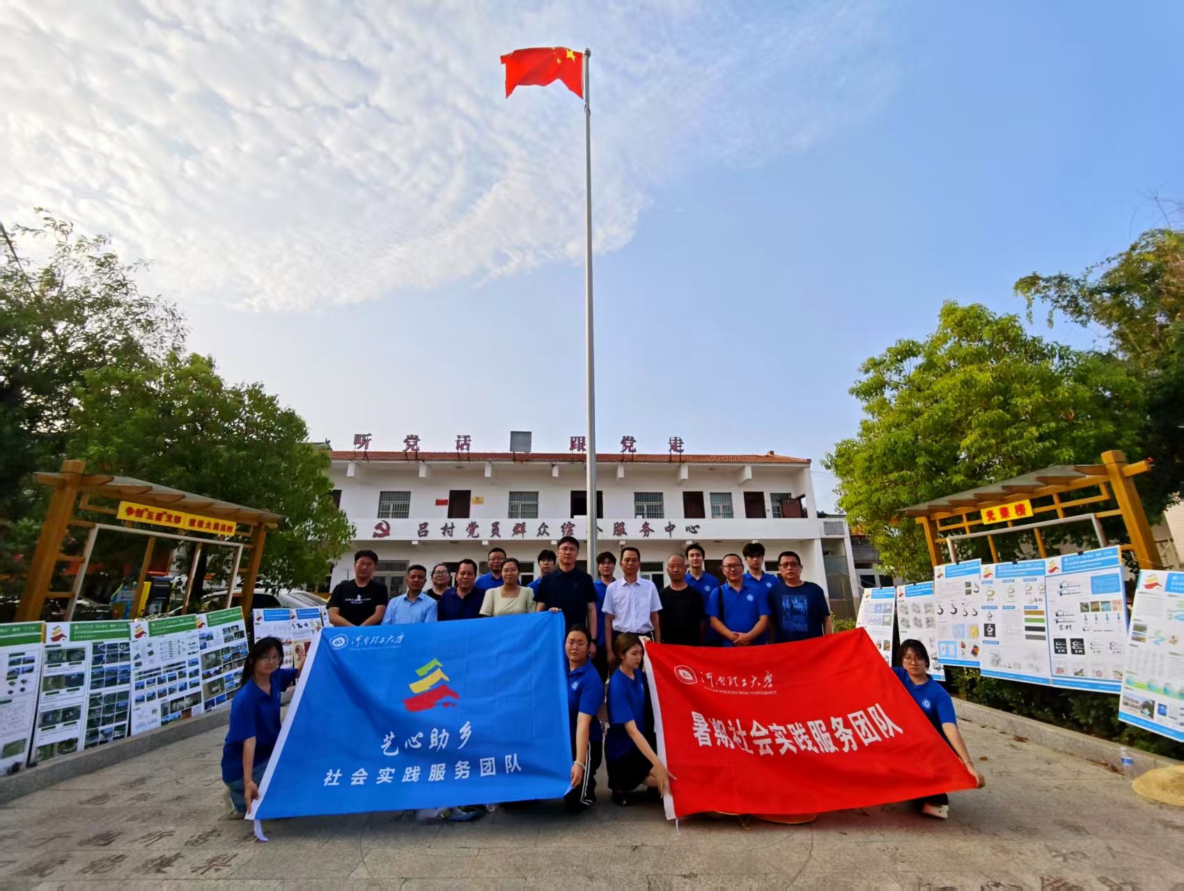 党委书记张建新一行前往温县岳村街道吕村,看望了奋战在墙绘一线的“艺心助乡”暑期“三下乡”社会实践团队,并对团队的工作成果给予了高度评价。