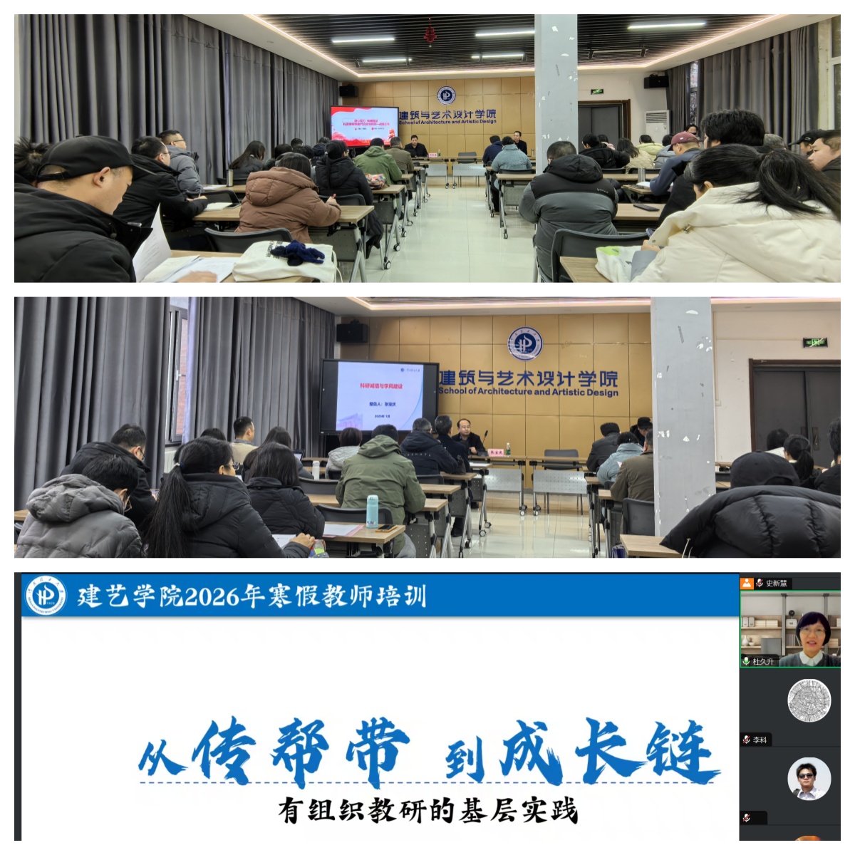 20日上午,测绘学院杜久升教授以《从“传帮带”到“成长链”——有组织教研的基层实践》为题,结合自身经验,系统介绍了如何通过构建“成长链”机制,实现教师教学能力的阶梯式提升,分析了有组织教研活动在促进团队协作、提升整体教学科研能力方面的关键作用。21日上午,全体院领导、各系室负责人就学院“十五五”发展规划进行研讨交流。