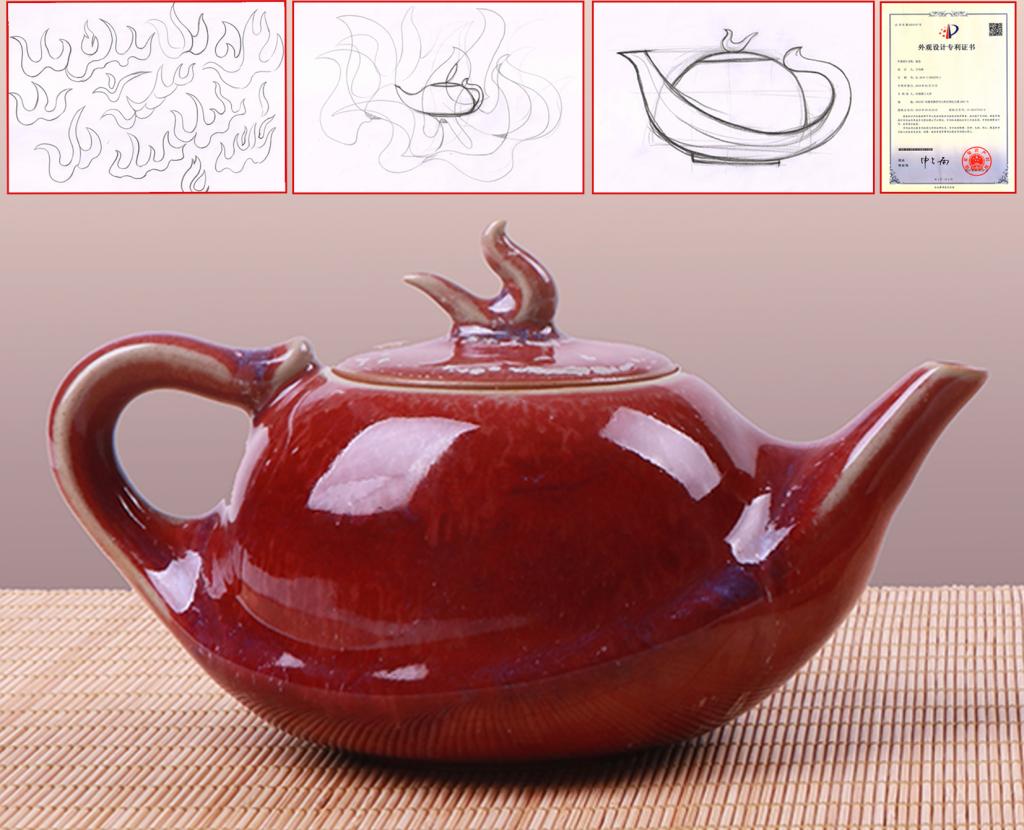 该壶选用钧瓷这一富有中原文化底蕴的陶瓷形式进行产品具象表达。钧瓷作为国家级重点非物质文化遗产,以其神奇的窑变艺术和深厚的文化积淀闻名于世,钧瓷茶壶作为中国瓷文化与茶文化相结合的产物,集聚中国传统文化之美,体现着中国文化特有的品味和情趣。该作品由动画疯
