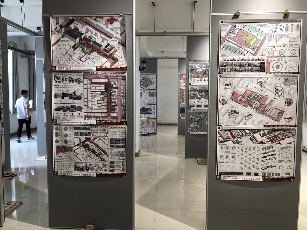 建筑学专业2023届毕业设计展在学院楼一楼大厅展出。整个展览共展出2023届建筑学专业49份作品,在此期间,多名师生到此参观。